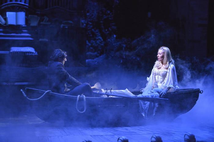 Aplauzele la scenă deschisă, strigătele de bravo, privirile strălucitoare și comentariile entuziaste după lăsarea cortinei sunt semne certe ale succesului. Spectacolul Fantoma de la operă, ce a inaugurat în seara zilei de 24 ianuarie noul sediu al Teatrului de Operetă și Musical din București, a avut parte din plin de toate aceste manifestări de simpatie. Ele s-au repetat și a doua zi, când am avut și eu bucuria să fiu în sala de pe bulevardul Octavian Goga nr.1 (lângă Biblioteca Națională). Este prima clădire de teatru construită în România, după anul 1989 (constructor trustul Aedificia Carpați SA, președinte ing. Petre Badea, șef de proiect, arhitect Eliodor Popa). Sala, foaierul, anexele s-au dorit elegante, plăcute, cu un design original și cu strălucirea estompată a unui interior intim și cochet. Dotarea tehnică a scenei este impresionantă. Numai în aceste condiții spectacolele de musical pot fi realizate în montări grandioase. Dovada cea mai bună este acest Fantoma de la operă care marchează un moment de referință în istoria teatrului muzical românesc. Istoric cred că va rămâne și… bugetul, de o generozitate uluitoare: 400.000 de euro! În aceste condiții, totul este posibil.