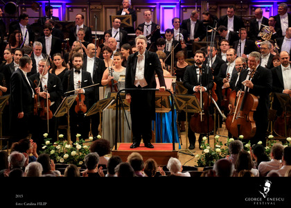 Este orchestra cea mai renumită din lume. Este, cumva, pentru noi, spiritual, prin orchestra aceasta al cărei destin l-a condus șapte ani Sergiu Celibidache al nostru. Prezența și entuziasmul dumneavoastră în decursul celor șapte ediții de când am avut onoarea să alcătuiesc programul Festivalului Enescu, am făcut din acesta un eveniment de frunte în arta și în cultura țării noastre, un adevărat brand a tot ce e mai bun în România de astăzi. Este ultima ediție a festivalului care este sub oblăduire mea. Îmi pare rău că mă despart de dumneavoastră în această sală de congrese și de partid. Îmi pare rău… cu toate încercările, cu toate intervențiile, toate promisiunile care mi le-au făcut toți președinții României de după revoluție și mai toți prim-miniștrii, inclusiv primarul orașului… n-au făcut ca nici măcar un proiect al unei săli de concerte demnă și decentă de cultura acestei țări să se facă. Așa că eu vă spun … rămâneți credincioși Festivalului Enescu!