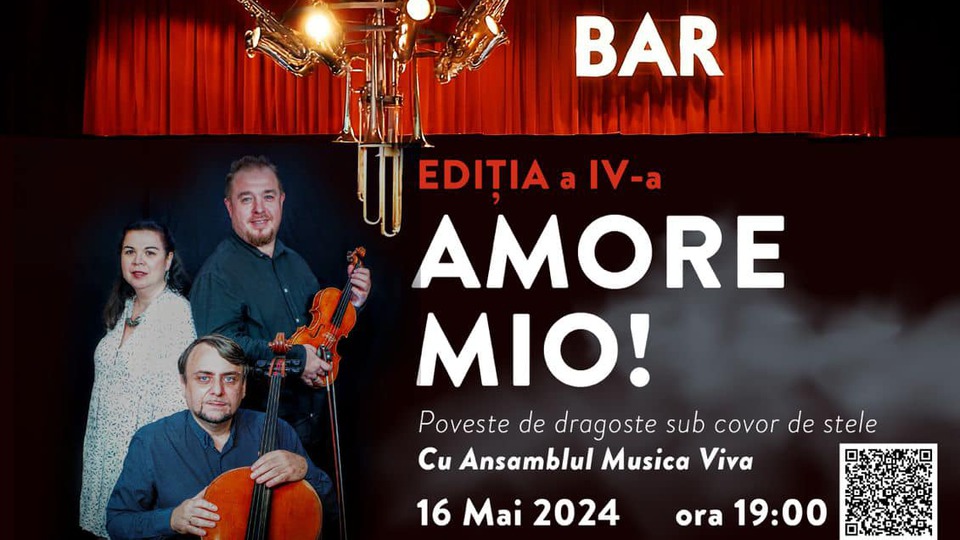 În Foaierul Teatrului Național de Operetă și Musical "Ion Dacian" se desfășoară astăzi, 16 mai 2024, recitalul intitulat "Amore Mio!" și susținut de Ansamblul "Musica Viva", din care fac parte pianista Andreea Butnaru, violonistul Adrian Florescu și violoncelistul Florin Mitrea.