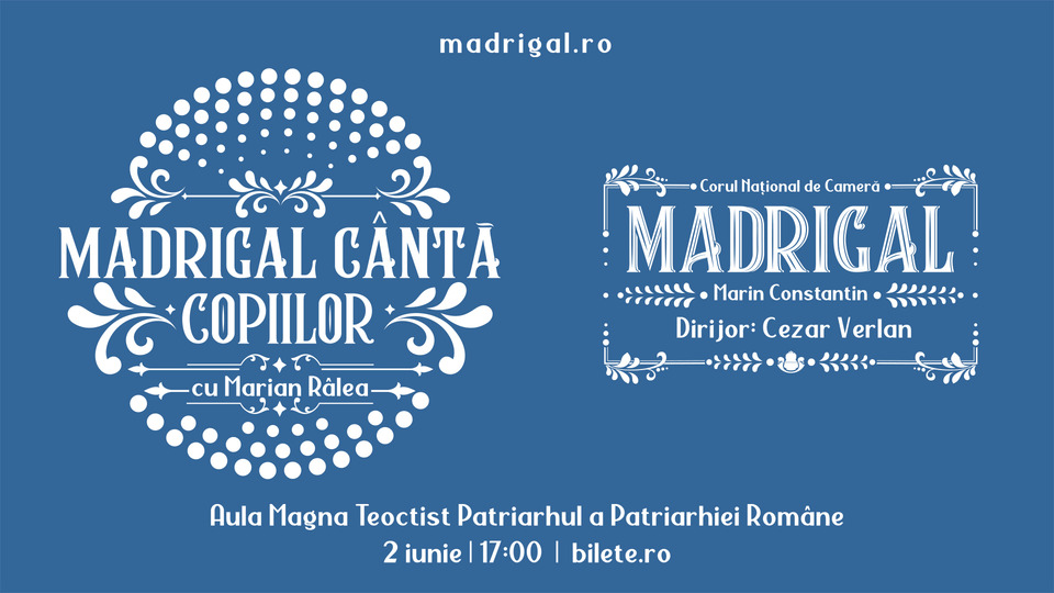 Duminică, 2 iunie 2024, începând cu ora 17.00, în Aula Magna "Teoctist Patriarhul" a Palatului Patriarhiei din București va avea loc Concertul "Madrigal cântă copiilor".