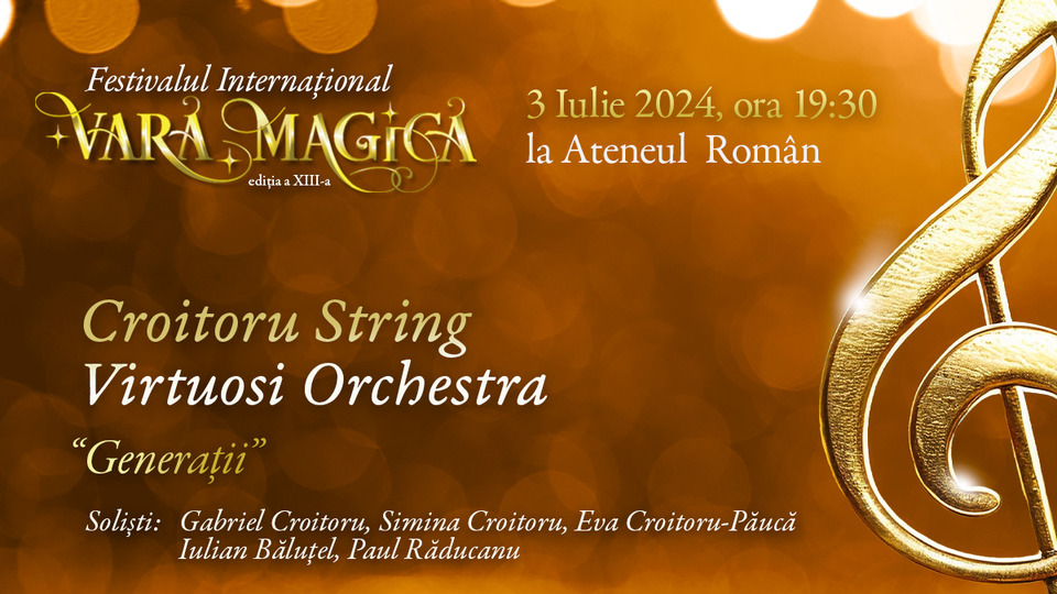Concertul susținut de Croitoru Strig Virtuosi Orchestra miercuri, 3 iulie, la Ateneul Român, poartă numele "Generații". Nu este un titlu întâmplător, spune violonistul Gabriel Croitoru: "Fiica fiicei mele va apărea pentru prima dată pe scenă cu o orchestră în spate, ceea ce pentru mine este un mare motiv de bucurie și de mândrie. Dacă până acum am mai văzut pe scenă 2 generații, de tipul tată, fiică/fiu, să vezi 3 generații pe scenă este foarte, foarte rar. Nepoata mea Eva, care acum termină clasa 1, va apărea alături de mama ei (fiica mea), într-un concert de Vivaldi, în care voi avea bucuria să le acompaniez împreună cu Croitoru Strig Virtuosi Orchestra. Sunt extrem de fericit."