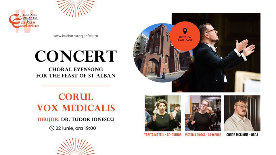 În cadrul Bucharest Organ Fest "Cantus Ecclesiae", ajuns la cea de-a patra ediție, se propune astăzi, 22 iunie 2024, un concert intitulat "Choral Evensong for the Feast of Saint Alban".