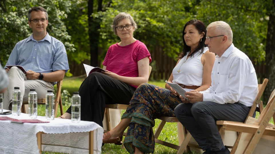 La iarbă verde și umbră răcoroasă, a avut loc conferința de presă din acest an a Festivalului de Muzică Veche Miercurea Ciuc, în cadrul căreia Angéla Ferencz, managerul Centrului Cultural Județean Harghita; Enikő Sógor, viceprimar responsabil de cultură; Ignác Filip, directorul artistic al festivalului, și András Szabó, consilierul artistic al festivalului, au prezentat tema festivalului, concertele, evenimentele conexe și alte informații importante (foto:Ádám Gyula).