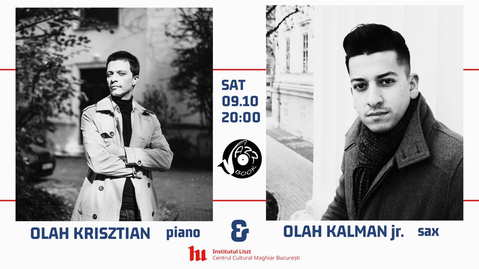 Duoul jazzistic format din frații Oláh Kálmán junior - saxofon și Oláh Krisztián - pian susține astăzi, 9 octombrie 2024, un concert în cadrul Festivalului "Zilele Jazzului Maghiar la București".