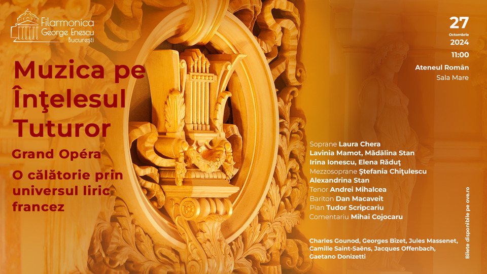 În cadrul seriei de concerte educative "Muzica pe înțelesul tuturor" a Filarmonicii "George Enescu" din București are loc astăzi, 27 octombrie 2024, la Ateneul Român, o călătorie prin universul liric francez.
