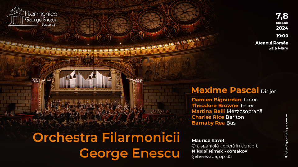 Programul cuprinde opera comică într-un act "Ora spaniolă" de Maurice Ravel, în versiune concertantă, prezentată pentru prima dată pe scena filarmonicii bucureștene. În posturi solistice vor evolua tenorii Damien Bigourdan și Theodore Browne, mezzosoprana Martina Belli, baritonul Charles Rice și basul Barnaby Rea.