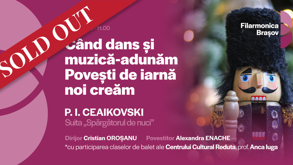 Cei mici vor fi introduși în lumea magică a "Spărgătorului de nuci" cu ajutorul muzicii lui Piotr Ilici Ceaikovski din baletul cu același nume și al claselor de balet ale Centrului Cultural Reduta, pregătite de coregrafa Anca Iuga. La pupitrul Orchestrei Filarmonicii din Brașov se va afla Cristian Oroșanu. Povestește Alexandra Enache.