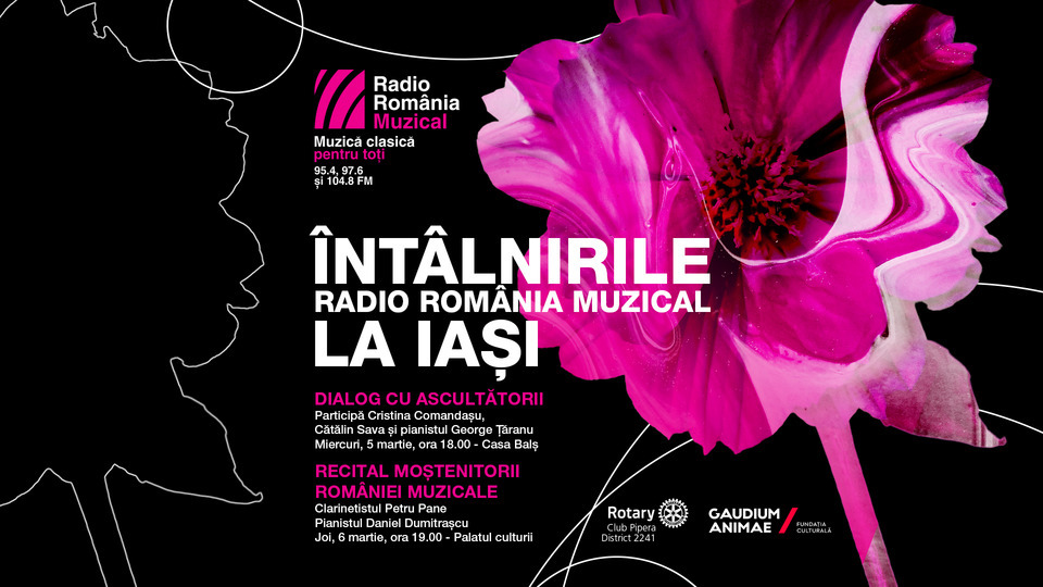 De asemenea, mâine, 6 martie, publicul ieșean este invitat la recitalul susținut de clarinetistul Petru Pane și pianistul Daniel Dumitrașcu, sub semnul proiectului "Moștenitorii României muzicale". Evenimentul are loc la Palatul Culturii din Iași, începând cu ora 19:00 și este prezentat de Cristina Comandașu.