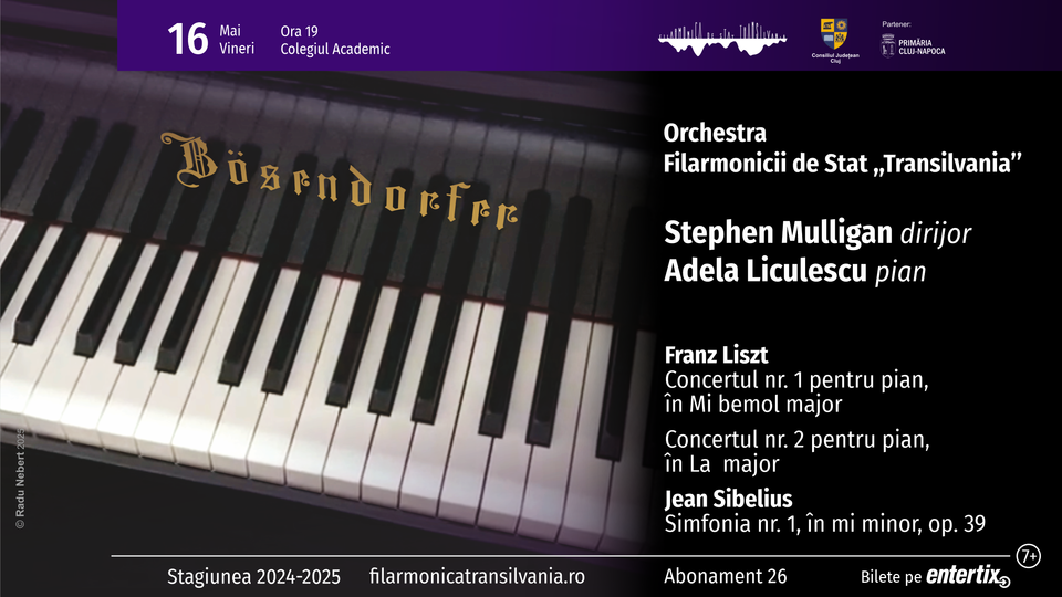 Solista serii de vineri va fi pianista Adela Liculescu, una dintre puținele interprete din țara noastră care deține prestigiosul titlu de "artist Bösendorfer", această recunoaștere internațională fiind oferită muzicienilor de elită, care se disting prin nivelul artistic de excepție. Ea va interpreta Concertele nr. 1 și nr. 2 de Liszt în compania Orchestrei Filarmonicii de Stat "Transilvania", sub bagheta dirijorului american Stephen Mulligan.