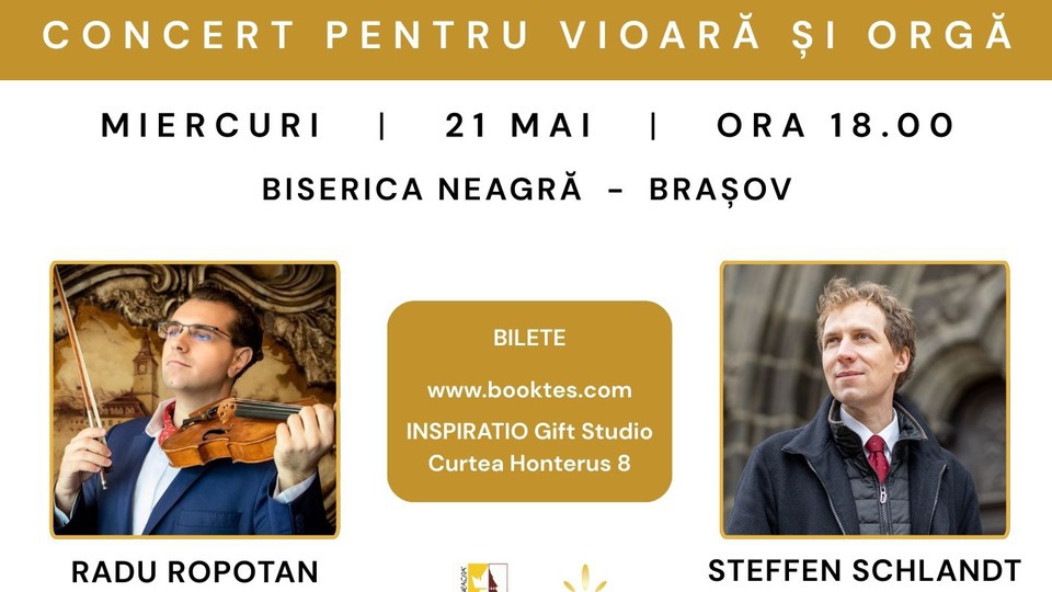 Biserica Neagră din Brașov găzduiește astăzi, 21 mai 2025, un recital susținut de violonistul Radu Ropotan și de Steffen Schlandt la orgă.