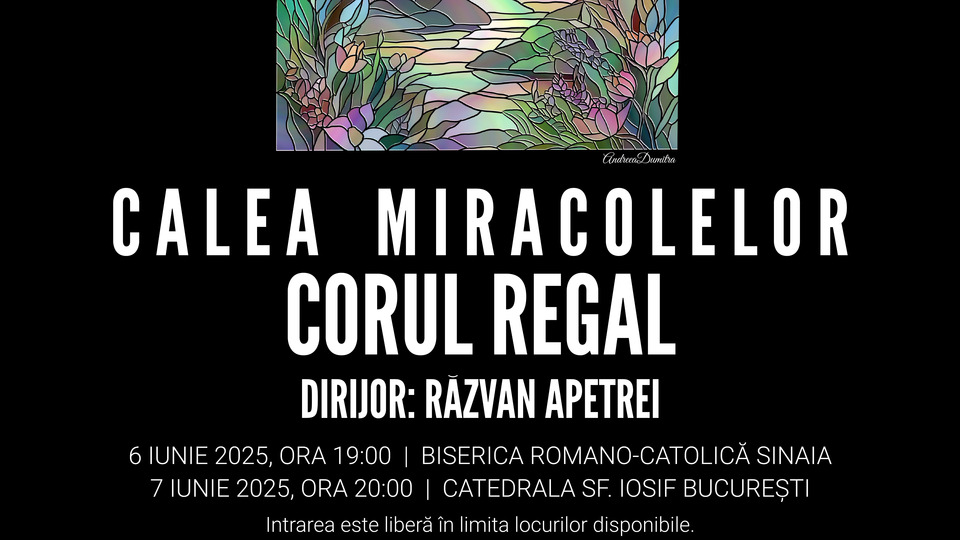 Corul Regal, condus de dirijorul Răzvan Apetrei, va evolua vineri, 6 iunie 2025, începând cu ora 19:00, în Biserica Romano-Catolică Preasfântă Inimă a lui Iisus din Sinaia și sâmbătă, 7 iunie 2025, începând cu ora 20:00, în Catedrala Romano-Catolică Sf. Iosif din București.