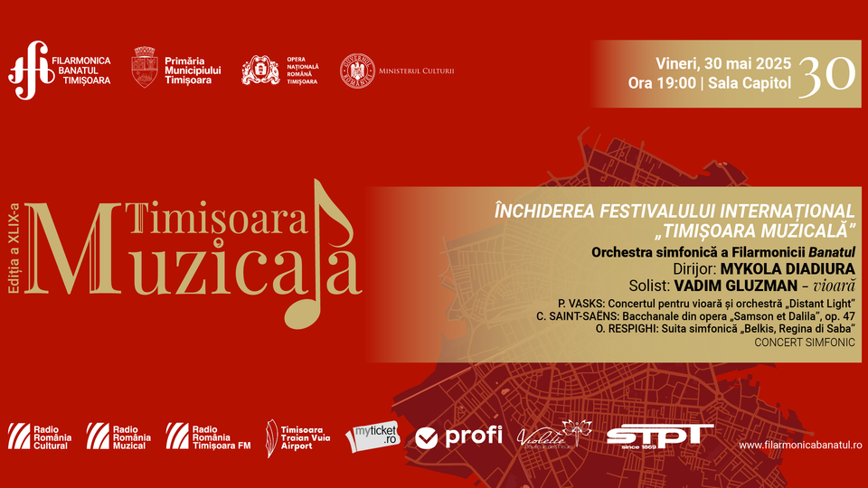 Evenimentul se va desfășura vineri, 30 mai 2025, la Sala Capitol, începând cu ora 19:00. Biletele sunt disponibile pe site-ul Filarmonicii Banatul Timișoara, la casierie și pe platforma myticket.ro: