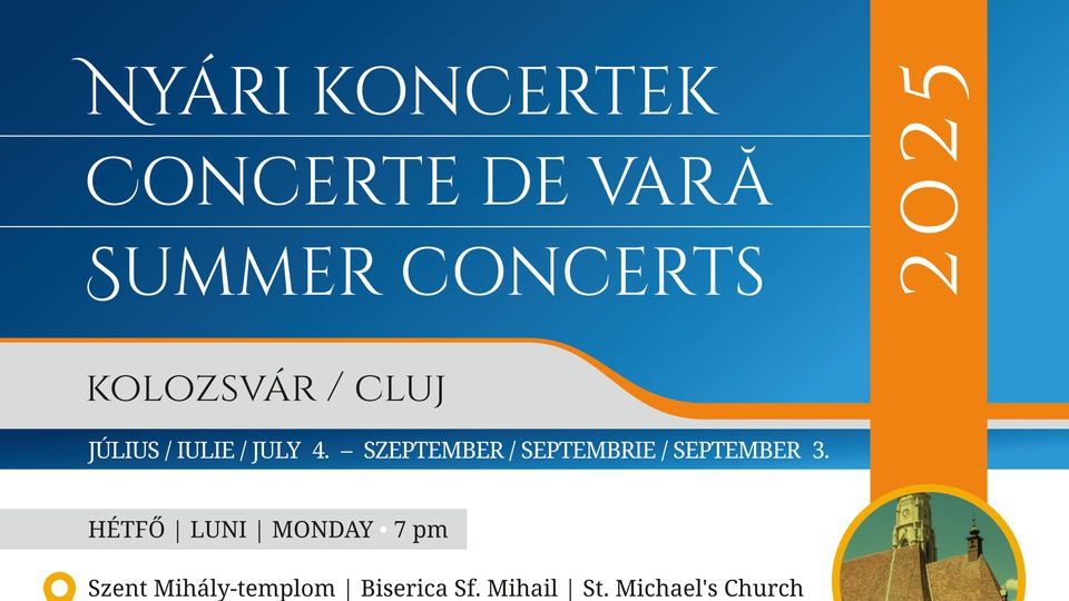 Seria KlausenMusik continuă până pe 3 septembrie, cu evenimente programate în fiecare luni și vineri, desfășurate în trei dintre lăcașurile de cult emblematice din centrul Clujului: Biserica Sfântul Mihail, Biserica Piariștilor și Biserica Luterană.