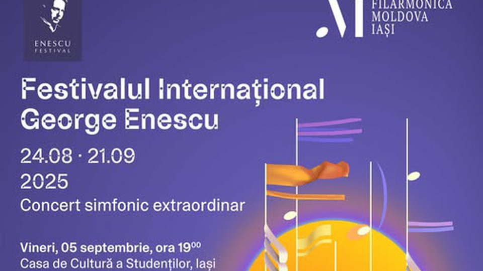 Orchestra Filarmonicii "Moldova" din Iași susține astăzi, 5 septembrie 2025, un concert sub egida Festivalului Internațional "George Enescu".