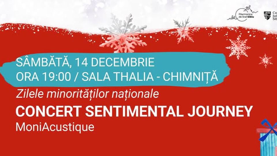 Trupa MoniAcustique susține astăzi, 14 decembrie 2024, un recital cameral cu ocazia Zileleor minorităților naționale, la Filarmonica din Sibiu.