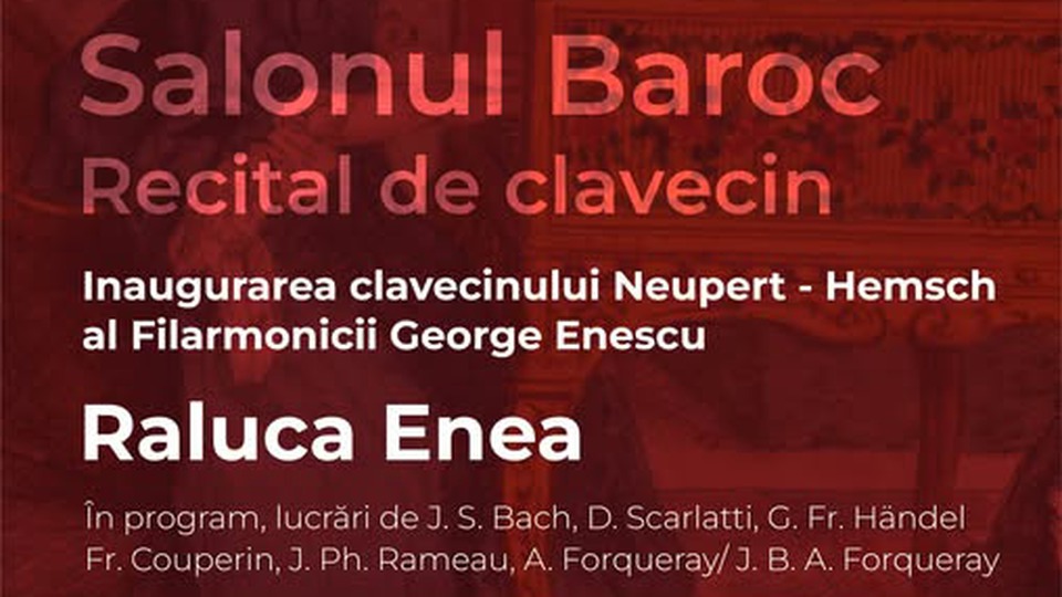 Începând cu ora 17:00, clavecinista Raluca Enea prezintă un program ce cuprinde lucrări semnate de Johann Sebastian Bach, Domenico Scarlatti, Georg Friedrich Händel, François Couperin și Jean-Philippe Rameau, printre alții.