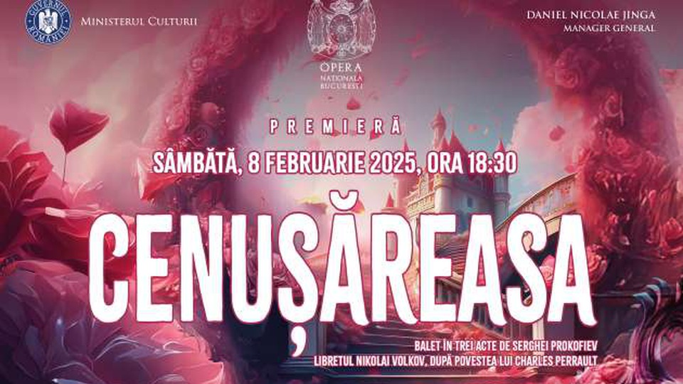 Opera Națională din București prezintă sâmbătă, 8 februarie 2025, premiera spectacolului de balet "Cenușăreasa" de Serghei Prokofiev, în regia și coregrafia semnate de Renato Zanella.