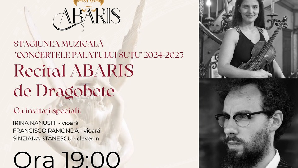 În cadrul Stagiunii muzicale "Concertele Palatului Suțu", publicul va putea asculta astăzi, 26 februarie 2025, formația de muzică veche "Abaris". Din ansamblu fac parte violonista Irina Nanushi, Francisco Ramonda la vioară barocă și Sînziana Stănescu la clavecin.