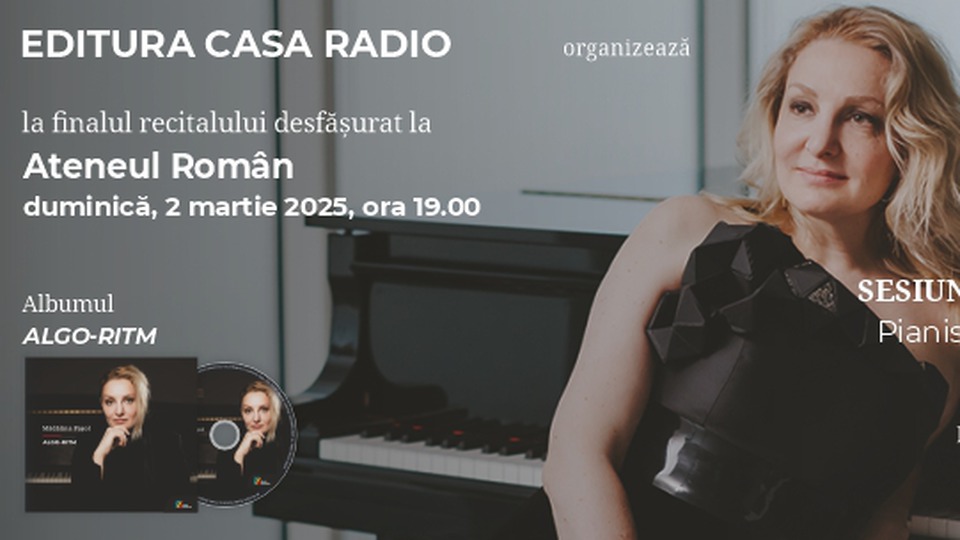 Ateneul Român găzduiește astăzi, 2 martie 2025, începând cu ora 19.00, un recital al pianistei Mădălina Pașol. Evenimentul marchează apariția noului său album, "Algo-Ritm", produs de Editura Casa Radio.