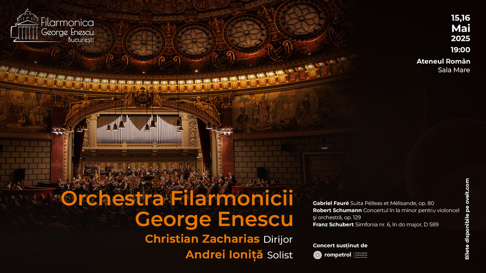 Violoncelistul Andrei Ioniță și dirijorul Christian Zacharias sunt invitații concertelor de astăzi și mâine, 15 și 16 mai 2025, propuse de Orchestra Filarmonicii "George Enescu" și incluse în cea de-a patra ediție a Festivalului CellEAST.