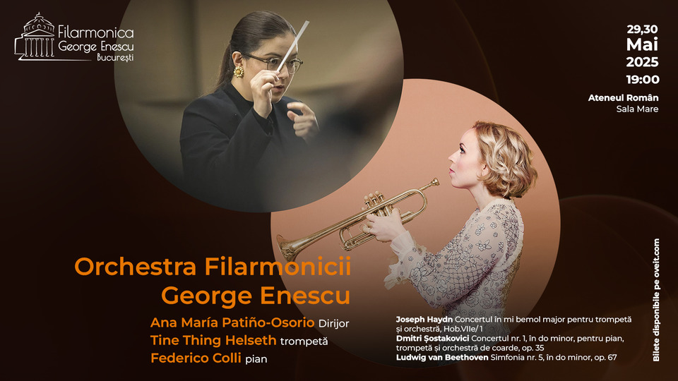 Orchestra Filarmonicii "George Enescu" reia astăzi, 30 mai 2025, programul prezentat ieri seară pe scena Ateneului Român. Cu această ocazie, în calitate de soliști revin trompetista norvegiană Tine Thing Helseth și pianistul italian Federico Colli, iar la pupitrul ansamblului bucureștean se va afla dirijoarea columbiană Ana María Patiño-Osorio.