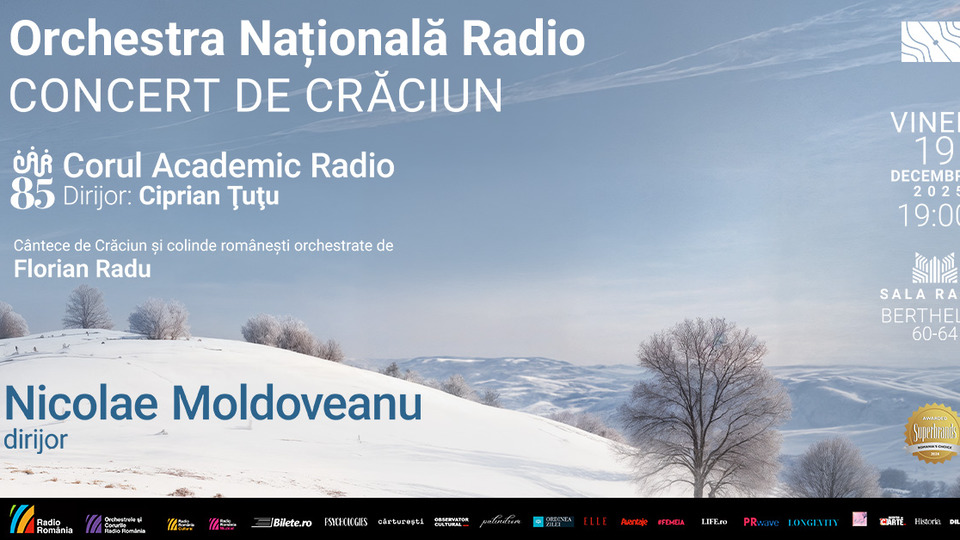 Vineri, 19 decembrie 2025, vă invităm la Sala Radio să vă bucurați de o seară specială de cântece internaționale de Crăciun și colinde românești (în orchestrația semnată de Florian Radu). Sub bagheta dirijorului Nicolae Moldoveanu, Orchestra Națională Radio și Corul Academic Radio (pregătit de dirijorul Ciprian Țuțu) vor recrea atmosfera sărbătorilor de iarnă prin piese ca A Christmas Fantasy, Bună dimineața la Moș Ajun, Astăzi s-a născut Christos, Sus la Poarta Raiului, O, ce veste minunată, Praznic luminos ș.a.