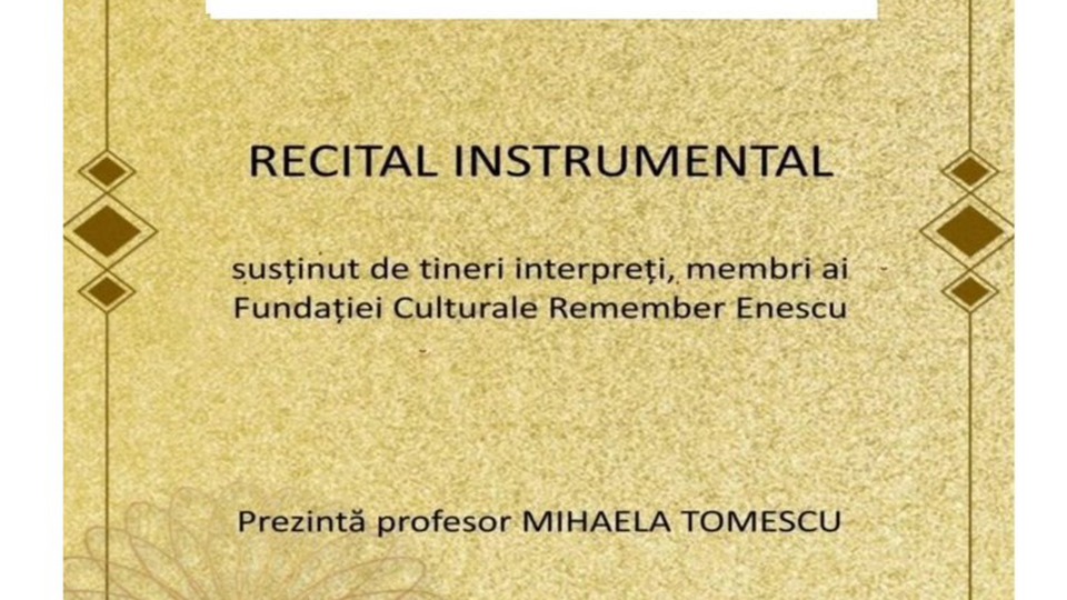 Centrul Cultural „Palatele Brâncovenești” găzduiește astăzi, 15 februarie 2026, un recital instrumental susținut de tineri muzicieni, membri ai Fundației Culturale „Remember Enescu”. Recitalul face parte din Stagiunea Muzicală „Ambasadorii Muzicii” 2026, un proiect dedicat promovării tinerei generații de interpreți și valorilor muzicii clasice. Programul este alcătuit din lucrări de Johann Sebastian Bach, Joseph Haydn, Ludwig van Beethoven, Carl Maria von Weber, Frédéric Chopin, Franz Liszt, Alexander Skriabin, Ciprian Porumbescu și Alberto Ginastera. Evenimentul va începe la ora 11:00, în Sala Scoarțelor, și va fi prezentat de profesoara Mihaela Tomescu, președinta Fundației Culturale „Remember Enescu”. Accesul este gratuit.
