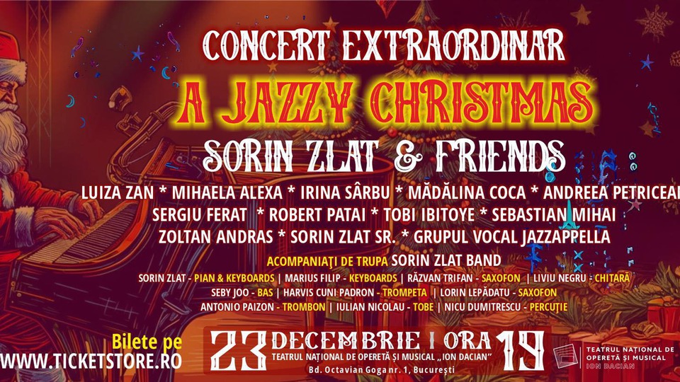 Ca în fiecare an, pianistul Sorin Zlat va susține împreună cu prietenii săi concertul "A Jazzy Christmas" la Teatrul de Operetă și Musical "Ion Dacian" din București. Anul acesta, evenimentul este programat în seara de 23 decembrie.