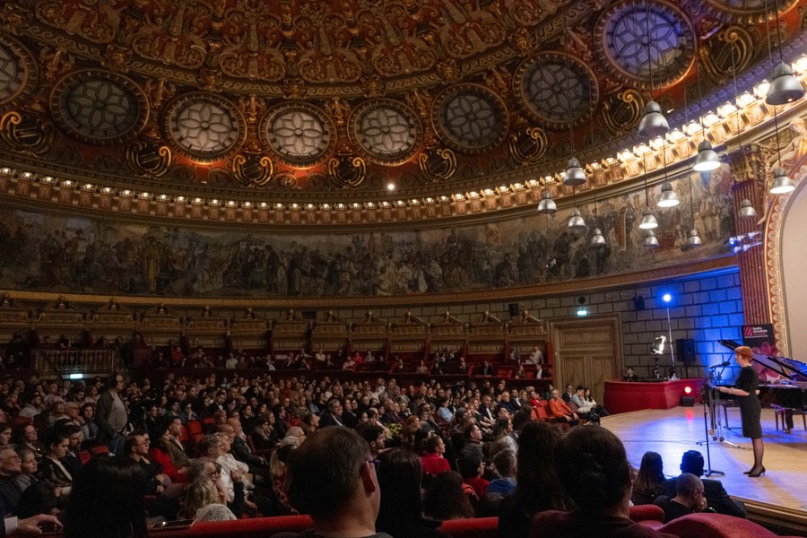 „Mă bucur foarte mult să vă salut în această seară, în Ateneul Român. Mă bucur cu atât mai mult să fiu astăzi prezentă aici, pentru că revin în București și în Ateneul Român după o pauză de mai bine de 20 de ani, așa că emoția este foarte frumoasă și mă bucur să am o sală atât de plină. Vă mulțumesc foarte mult că ați ales să vă petreceți următoarele două ore alături de mine și alături de repertoriul care sper să vă placă la fel de mult cum mă bucură și pe mine de fiecare dată."