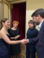 Într-un intermezzo în care pianista s-a pregătit pentru ultima piesă din program, scena i-a revenit colegei mele, Cristina Comandașu, manager Radio România Muzical și inițiatoarea proiectului Moștenitorii României muzicale, care, ca într-o completare a evoluției Alinei Bercu, a vorbit cu publicul despre parcursul acesteia în România și apoi despre cariera sa internațională, subliniind și importanța unui proiect care să sprijine tinerele talente și interpreții români care desfășoară cariere importante în străinătate.