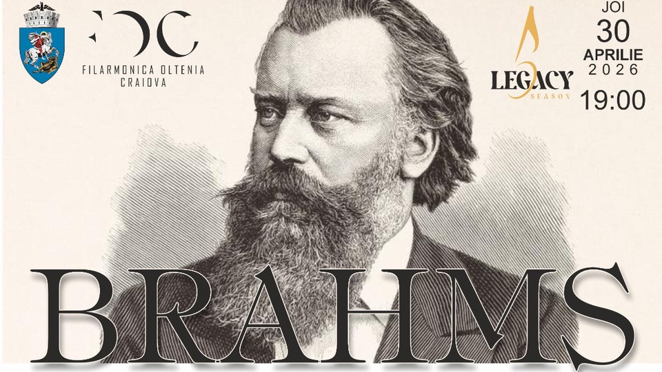 Joi, 30 aprilie 2026, Orchestra Simfonică a Filarmonicii "Oltenia" propune un concert dedicat integral creației lui Johannes BRAHMS, sub conducerea dirijorului CRISTIAN MANDEAL, alături de pianista OXANA CORJOS.