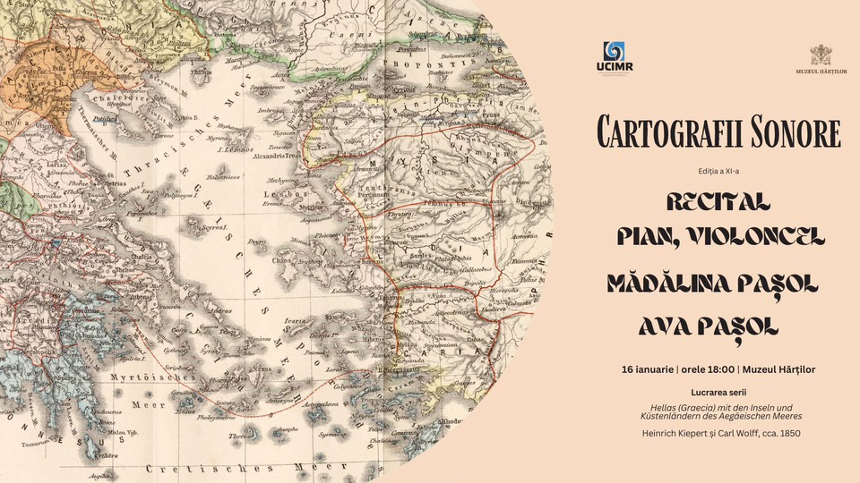 Vineri, 16 ianuarie, orele 18:00, Muzeul Hărților împreună cu Uniunea de Creație Interpretativă a Muzicienilor din România (UCIMR) invită publicul la primul recital din 2026 al stagiunii "Cartografii Sonore. Concertele MNHCV", ediția a XI-a. Proiectul aduce în același spațiu al descoperirii și al dialogului cultural muzica și hărțile istorice.