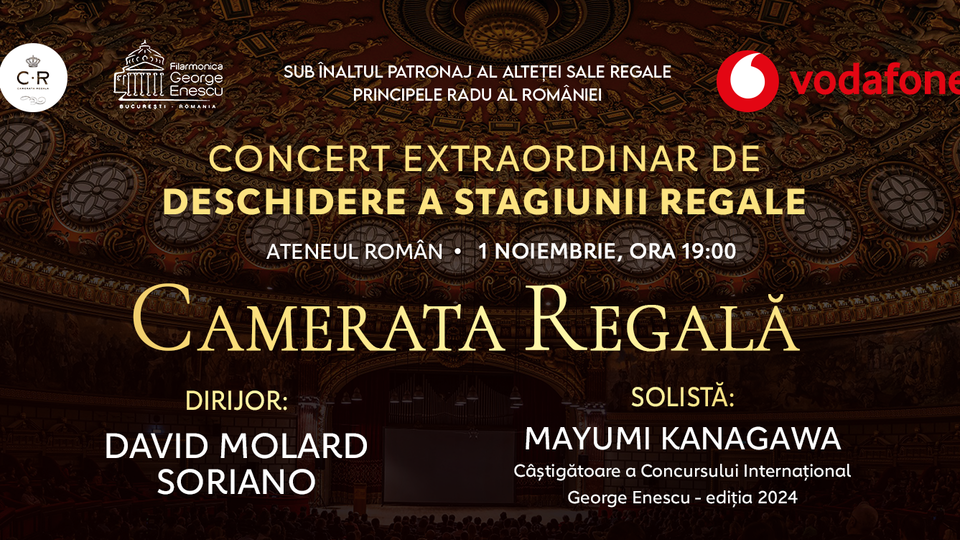 Vă așteptăm la Concertul Extraordinar de deschidere al Stagiunii Regale 2025-2026, care va avea loc pe 1 noiembrie 2025, ora 19.00, la Ateneul Român.