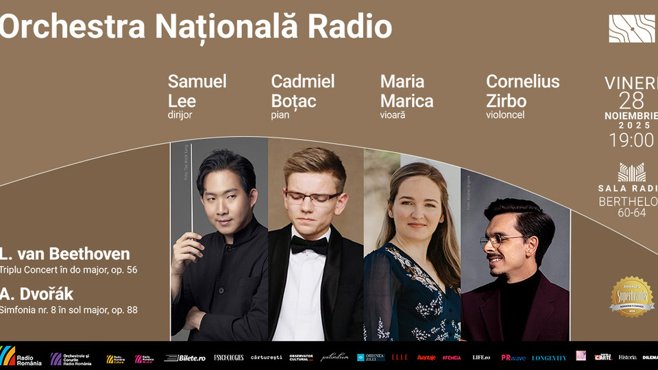 Vineri, 28 noiembrie 2025 (de la 19.00), Orchestra Națională Radio va evolua sub bagheta lui Samuel Lee, câștigătorul Concursului Malko pentru tineri dirijori - Danemarca, 2024. A fost dirijor asociat al Orchestrei Simfonice din Cincinnati și stagiunea 2025/26 include debutul său ca dirijor pentru Orchestra Simfonică din Islanda, Filarmonica din Copenhaga, Orchestra Simfonică din Malmö, Orchestra Radio a Norvegiei, orchestra Teatrului Carlo Felice - Genova ș.a. Ca soliști îi veți aplauda pe Cadmiel Boțac - pian, Maria Marica - vioară și Cornelius Zirbo - violoncel, trei tineri artiști cu o carte de vizită deja cuprinzătoare.