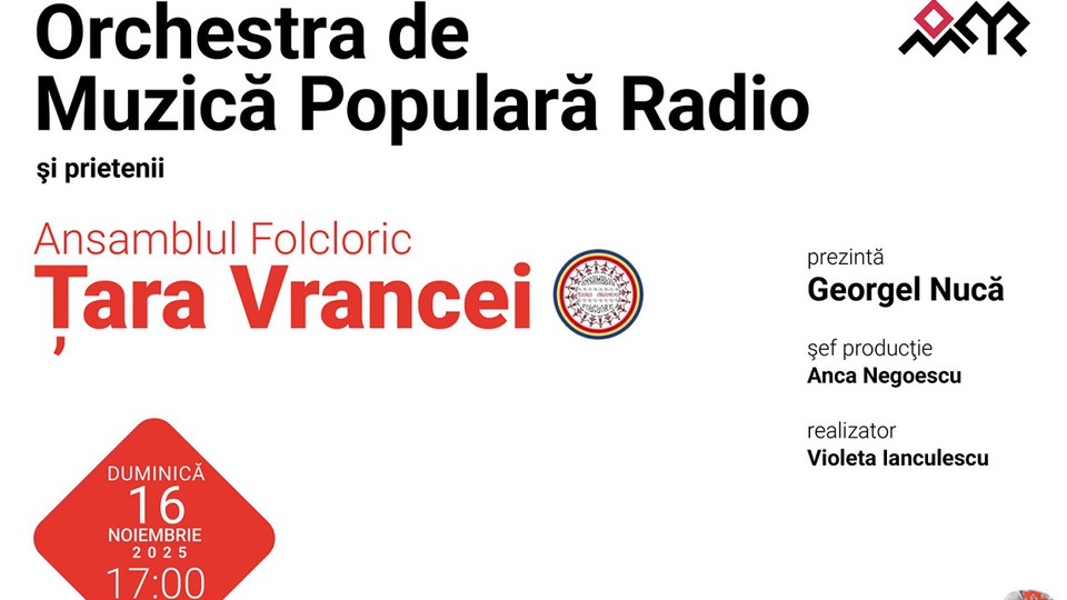 Duminică, 16 noiembrie (de la ora 17:00), Ansamblul Folcloric Țara Vrancei din Focșani sărbătorește 30 de ani de activitate artistică printr-un concert aniversar prezentat la Sala Radio, alături de Orchestra de Muzică Populară Radio (dirijată de Adrian Grigoraș).