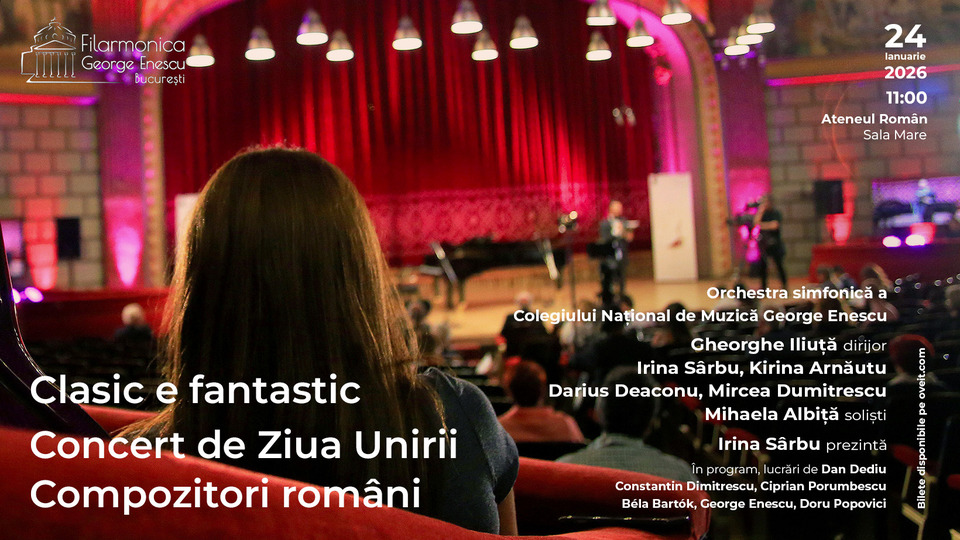 Filarmonica George Enescu invită publicul astăzi, 24 ianuarie 2026, la un concert din seria educativă "Clasic e fantastic", cu ocazia sărbătoririi Zilei Unirii Principatelor Române.