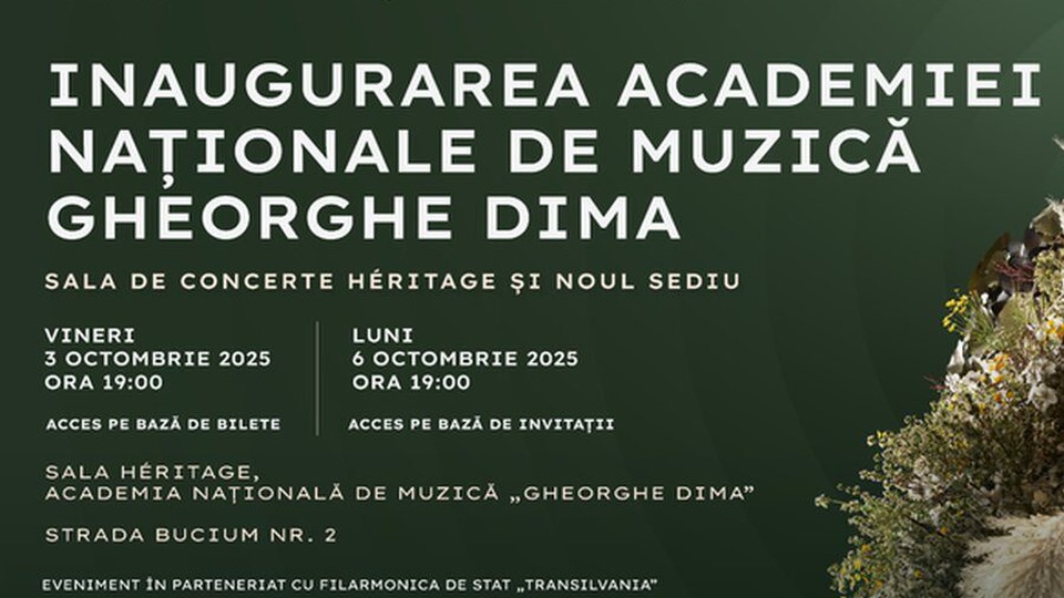 Astăzi, 3 octombrie 2025, Academia Națională de Muzică "Gheorghe Dima" din Cluj-Napoca inaugurează Sala Héritage (Strada Bucium nr. 2) printr-un concert de gală, susținut de Corul și Orchestra Filarmonicii "Transilvania". La conducere se vor afla, alternativ, Lawrence Foster, dirijor emerit al filarmonicii clujene, și Cristian Mandeal, dirijor principal al orchestrei instituției.