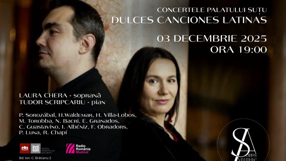 "Dulces Canciones Latinas" promite o seară memorabilă, în care publicul va fi purtat prin peisaje sonore bogate, unde pasiunea latină, lirismul, nostalgia și exuberanța ritmică se reunesc într-un spectacol musical armonios și cuceritor. Concertul va avea loc miercuri, 3 decembrie, începând cu ora 19.00, la Palatul Suțu (Bd. I.C. Brătianu nr. 2).