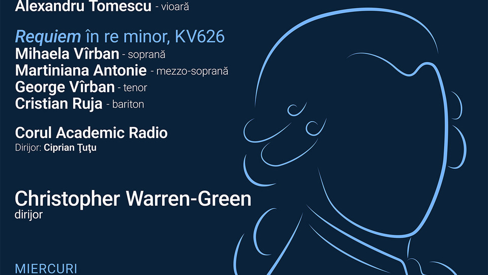 Alexandru Tomescu va fi solist în partitura Concertului nr. 3 KV 216 în sol major pentru vioară și orchestră din creația mozartiană. În a doua parte a serii, publicul de la Sala Radio va putea să asculte Recviemul KV 626 în re minor semnat de Wolfgang Amadeus Mozart. Evoluează în ipostaze solistice soprana Mihaela Vîrban, mezzosoprana Martiniana Antonie, tenorul George Vîrban și baritonul Cristian Ruja.