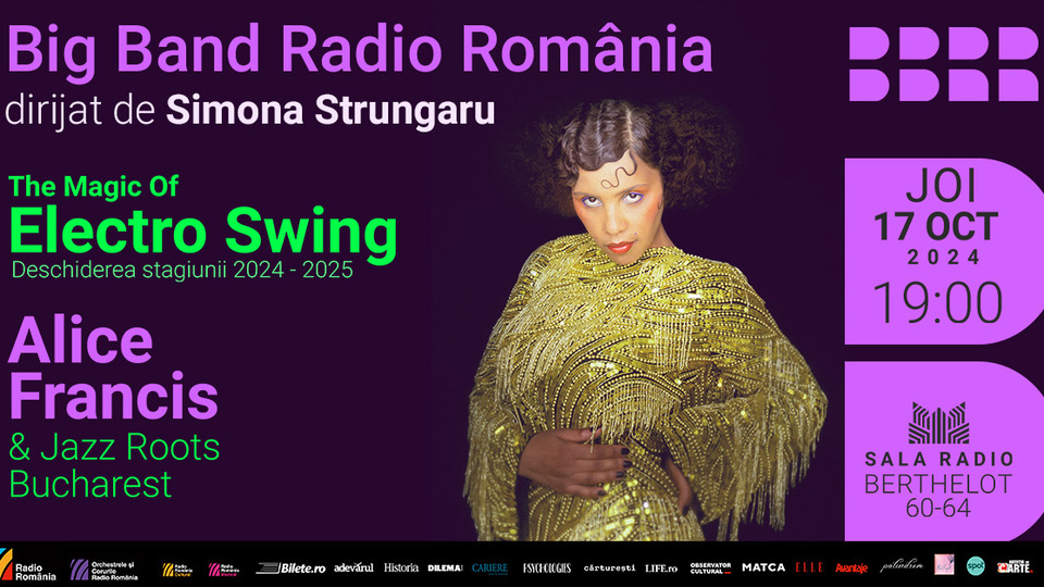 Joi, 17 octombrie 2024 (de la ora 19.00), sunteți invitați la Sala Radio în pași de... SWING! Big Band-ul Radio dirijat de Simona Strungaru își deschide noua stagiune pe scena bucureșteană cu un concert "electrizant": The Magic of… Electro Swing.
