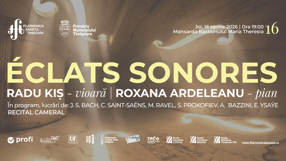 "Éclats Sonores" se intitulează recitalul propus astăzi, 16 aprilie 2026, de Filarmonica "Banatul" din Timișoara.