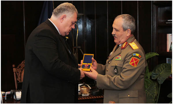 Emblema de onoare din partea Statului Major al Forțelor Terestre oferită Președintelui Director General al Radio România
