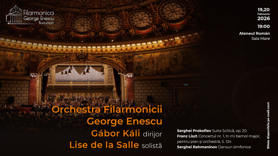 Filarmonica George Enescu îi aduce pe scena Ateneului Român, pe 19 și 20 februarie, pe dirijorul Gábor Káli și pe pianista Lise de la Salle, într-un program de mare forță artistică cu lucrări de Prokofiev, Liszt și Rahmaninov. Concertele sunt sold-out.