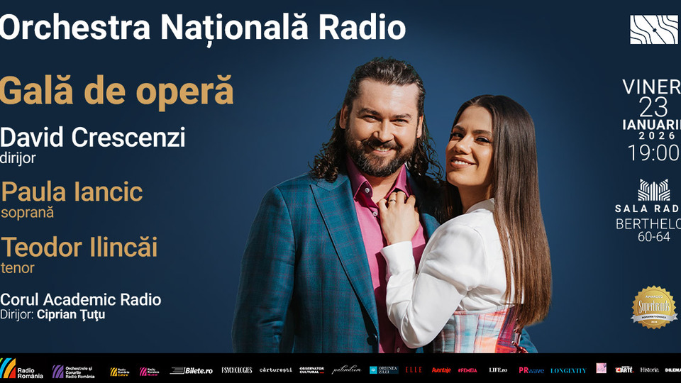 Așa cum și-a obișnuit publicul, la fiecare început de an, în luna ianuarie, Orchestra Națională Radio propune un eveniment de înaltă ținută dedicat operei. Pe 23 ianuarie 2026 (de la 19.00) sunteți invitați la Sala Radio la o gală de operă - cu participarea extraordinară a doi apreciați artiști lirici, un cuplu pe scenă, dar și în viața privată, ambii fiind aplaudați pe scene internaționale de prestigiu: soprana Paula Iancic și tenorul Teodor Ilincăi. Foarte recent, pe 14 ianuarie 2026, la Gala Uniunii Criticilor, Redactorilor și Realizatorilor Muzicali, Paula Iancic a fost desemnată "Revelația anului 2025".