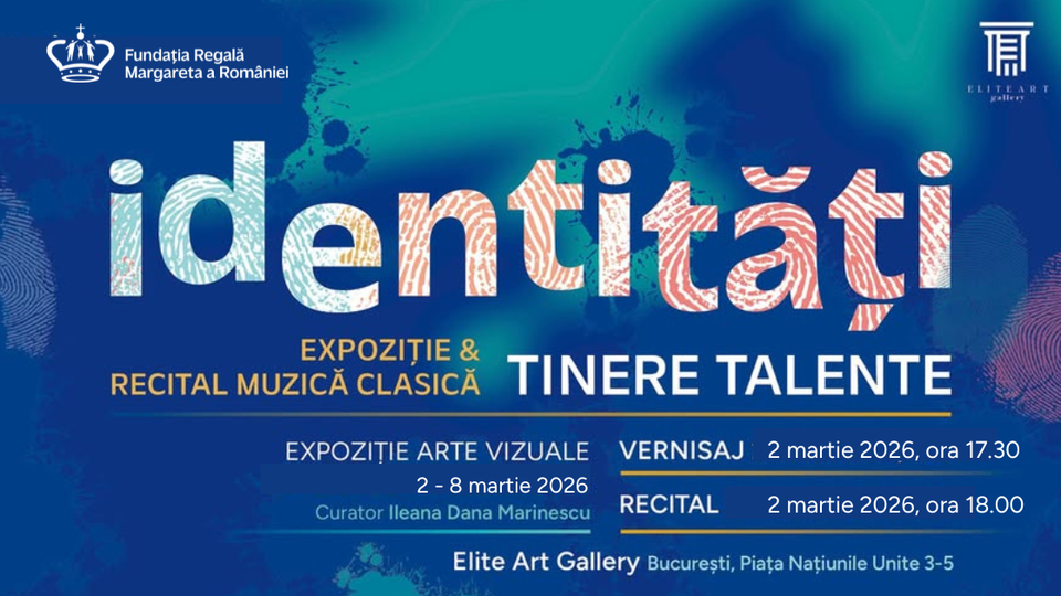 Fundația Regală Margareta a României anunță Identități, evenimentul care marchează debutul public al generației 2026 a programului național Tinere Talente: 36 de bursieri - 18 artiști vizuali și 18 muzicieni - cu vârste între 15 și 24 de ani, din România și Republica Moldova. Aflat la a 13-a ediție, evenimentul va avea loc luni, 2 martie 2026, la Elite Art Gallery (Piața Națiunile Unite nr. 3-5, București) și include vernisajul expoziției de arte vizuale, de la ora 17:30 și recitalul de muzică clasică susținut de bursieri la ora 18:00. Accesul este liber.