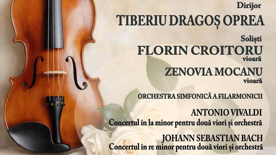 În deschiderea programului: Concertele RV 522 în la minor de Antonio Vivaldi și BWV 1043 în re minor de Johann Sebastian Bach, ambele pentru două viori și orchestră, avându-i ca soliști pe violoniștii Florin Croitoru și Zenovia Mocanu. În partea secundă: Simfonia a II-a în re major de Ludwig van Beethoven.