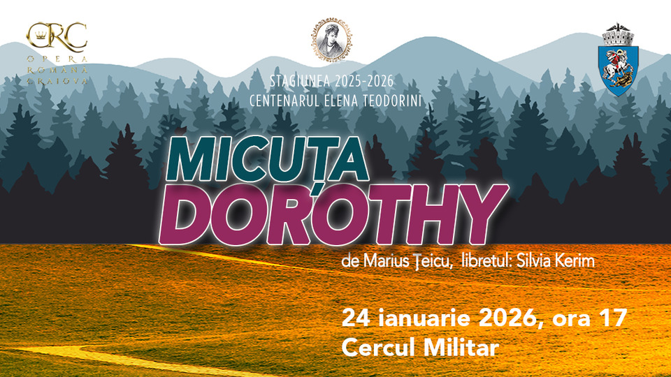 Opera Română din Craiova propune astăzi, 24 ianuarie 2026, musicalul pentru copii "Micuța Dorothy" pe muzică de Marius Țeicu și un libret de Silvia Kerim.