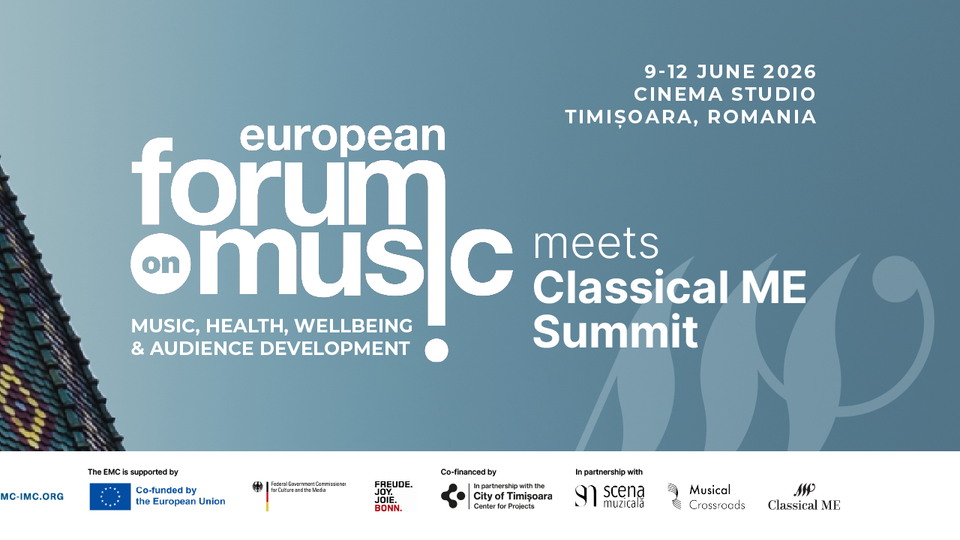 European Music Council și Asociația Scena Muzicală aduc la Timișoara, în perioada 9-12 iunie, cea de-a 14-a ediție a European Forum on Music, conferința anuală dedicată muzicienilor și profesioniștilor din domeniu. Tema ediției - Music, Health, Wellbeing - explorează relația dintre muzică și sănătate. În acest context, ediția din 2026 include și Classical ME Summit, eveniment anual organizat de Asociația Scena Muzicală, care este reprezentat în cadrul Forumului printr-un program curatoriat axat pe dezvoltarea audiențelor.
