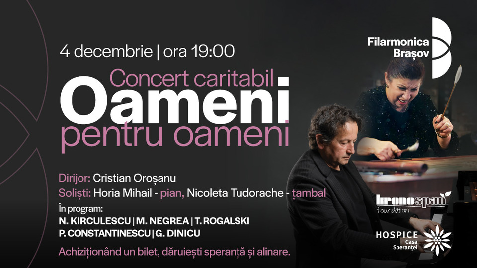"Oameni pentru oameni": Concert caritabil cu Cristian Oroșanu, Horia Mihail, Nicoleta Tudorache și Orchestra Filarmonicii Brașov