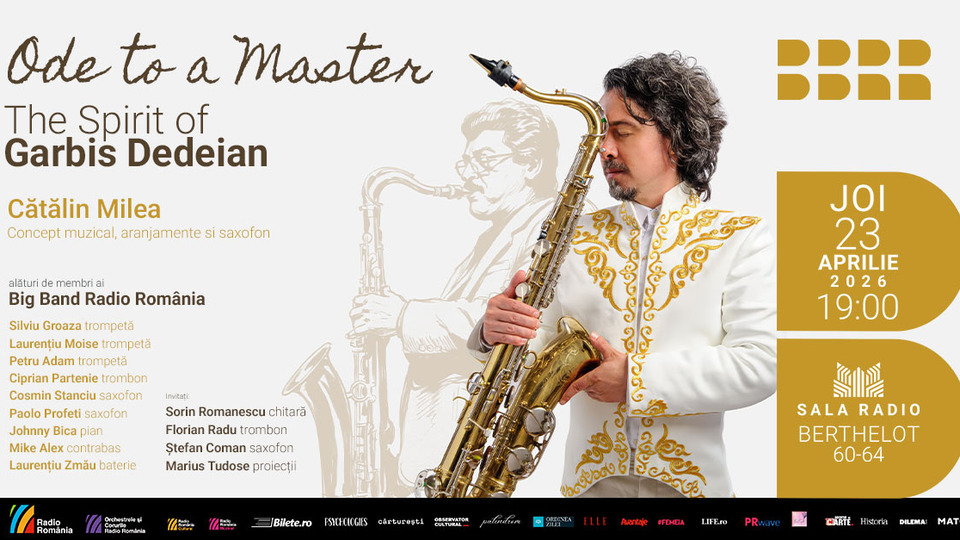 Joi, 23 aprilie 2026 (de la 19.00), Sala Radio va fi scena unui concert emoționant: "Ode to a Master" - The Spirit of Garbis Dedeian, un omagiu adus legendei jazzului românesc. În prim-plan se află saxofonistul Cătălin Milea, autorul conceptului muzical și al aranjamentelor acestui concert, un artist recunoscut pentru creativitatea sa.